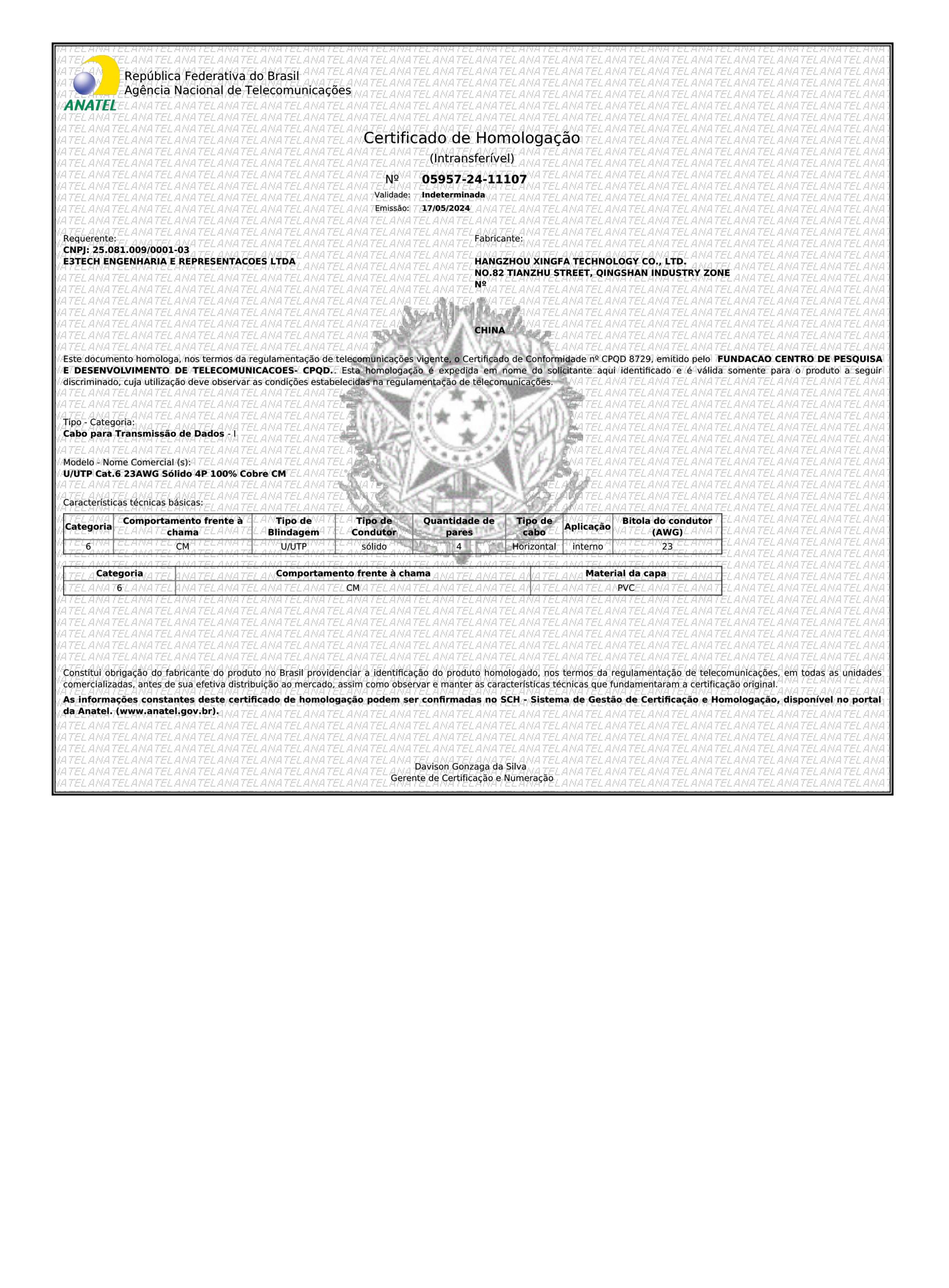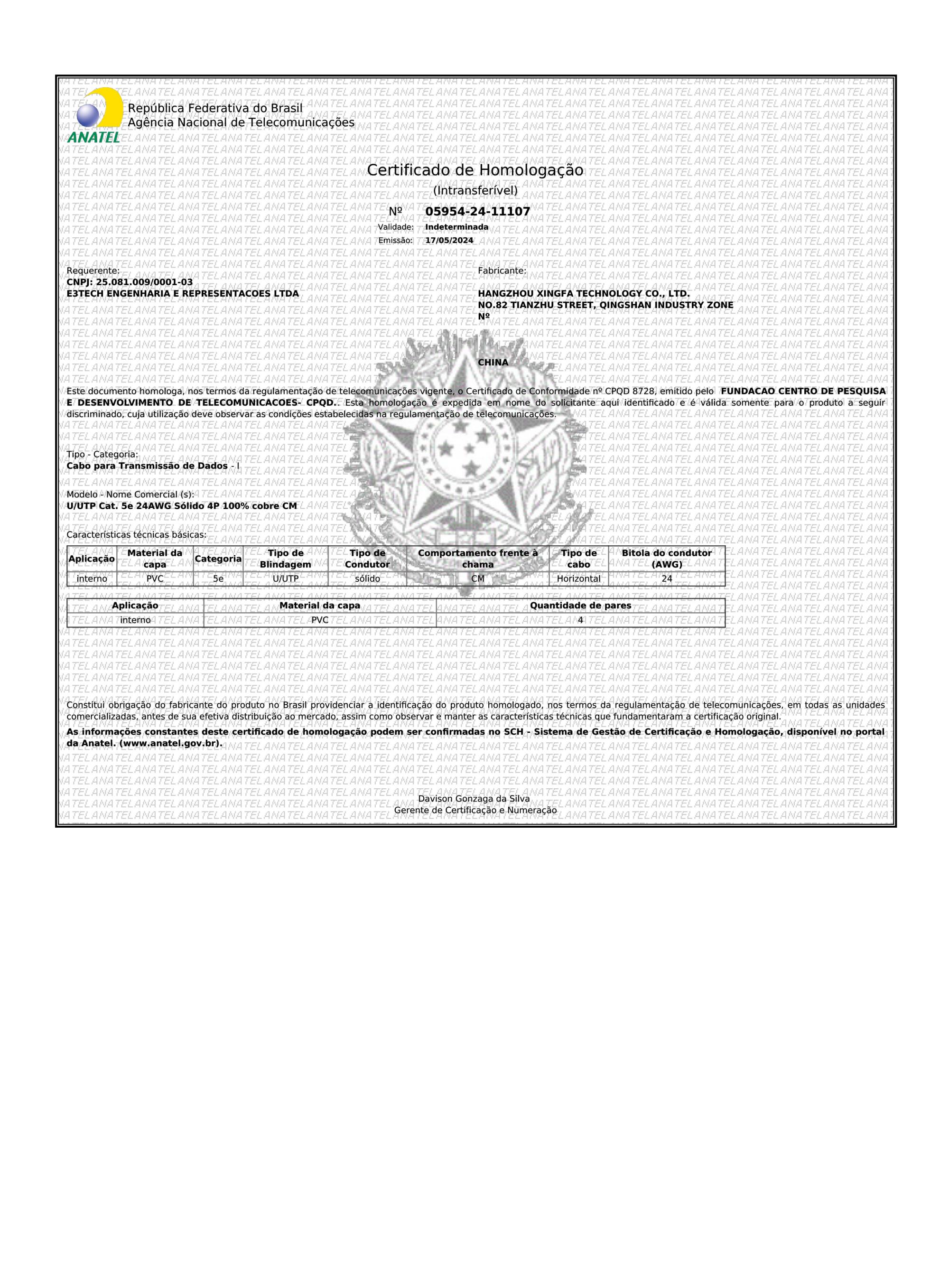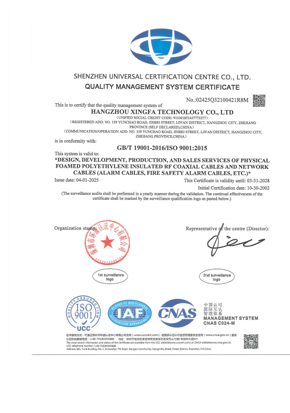 Fondée en 1995, Hangzhou Xingfa Technology Co., Ltd. est une entreprise de production qui a passé la certification de système de gestion de la qualité ISO 9001:2000. Il est situé dans la ville de Hangzhou, près de Shanghai et du port de Ningbo. La société se spécialise dans les câbles de télécommunication et de contrôle, y compris les câbles LAN, les câbles d'alarme incendie, les câbles d'alarme, les câbles de haut-parleurs, les câbles téléphoniques, les câbles coaxiaux, les câbles à fibres optiques, etc.